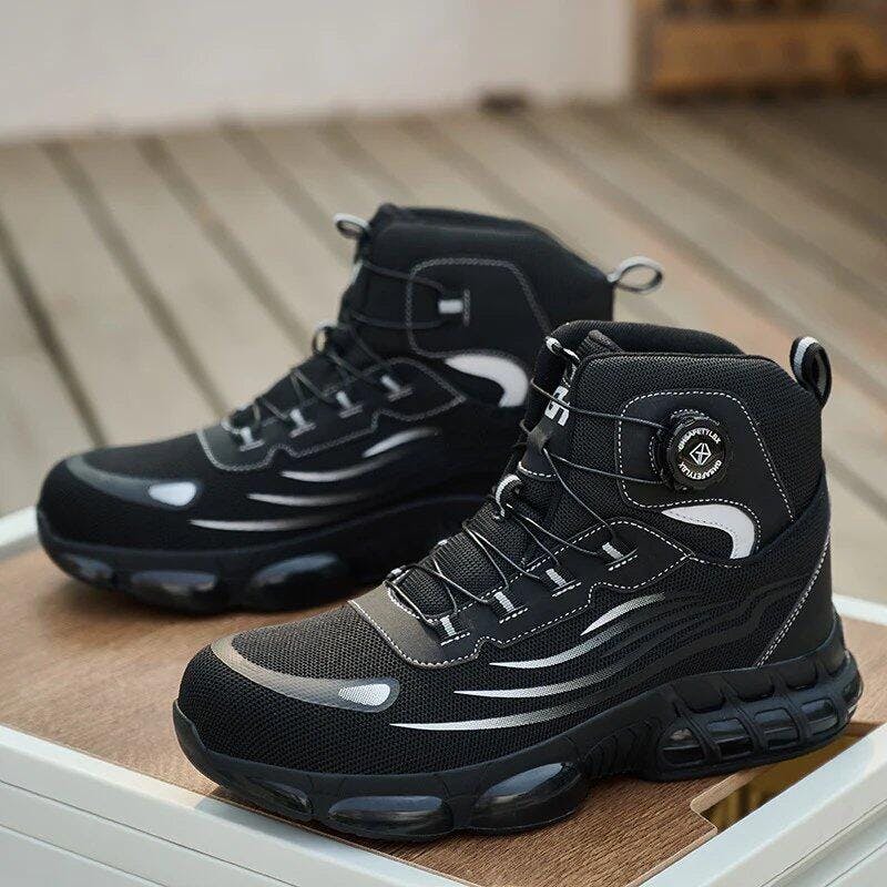 Safety Work Shoes for Men Summer Mesh Breathable Anti-Slip Rotating Buckle No-Tie Labor Protection Shoe