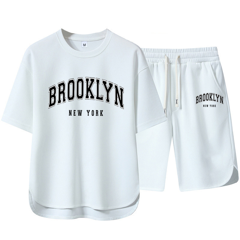 Summer Men's High-end Casual Sports Set Loose Fashion Versatile Shorts Round Neck Short Sleeve T-Shirt Two-piece Set