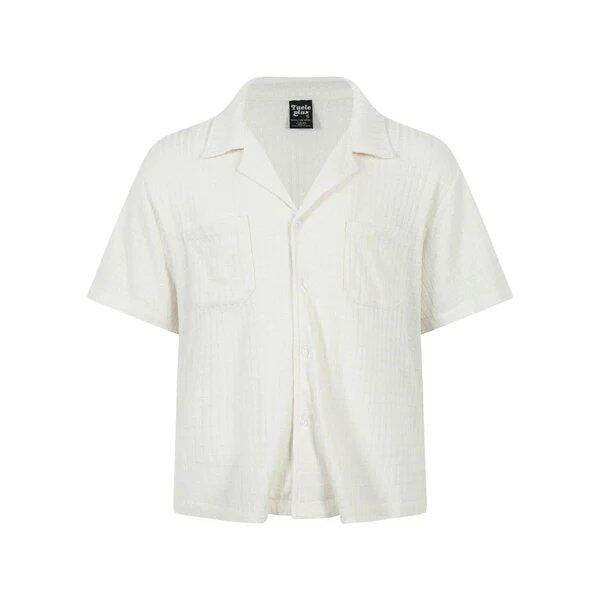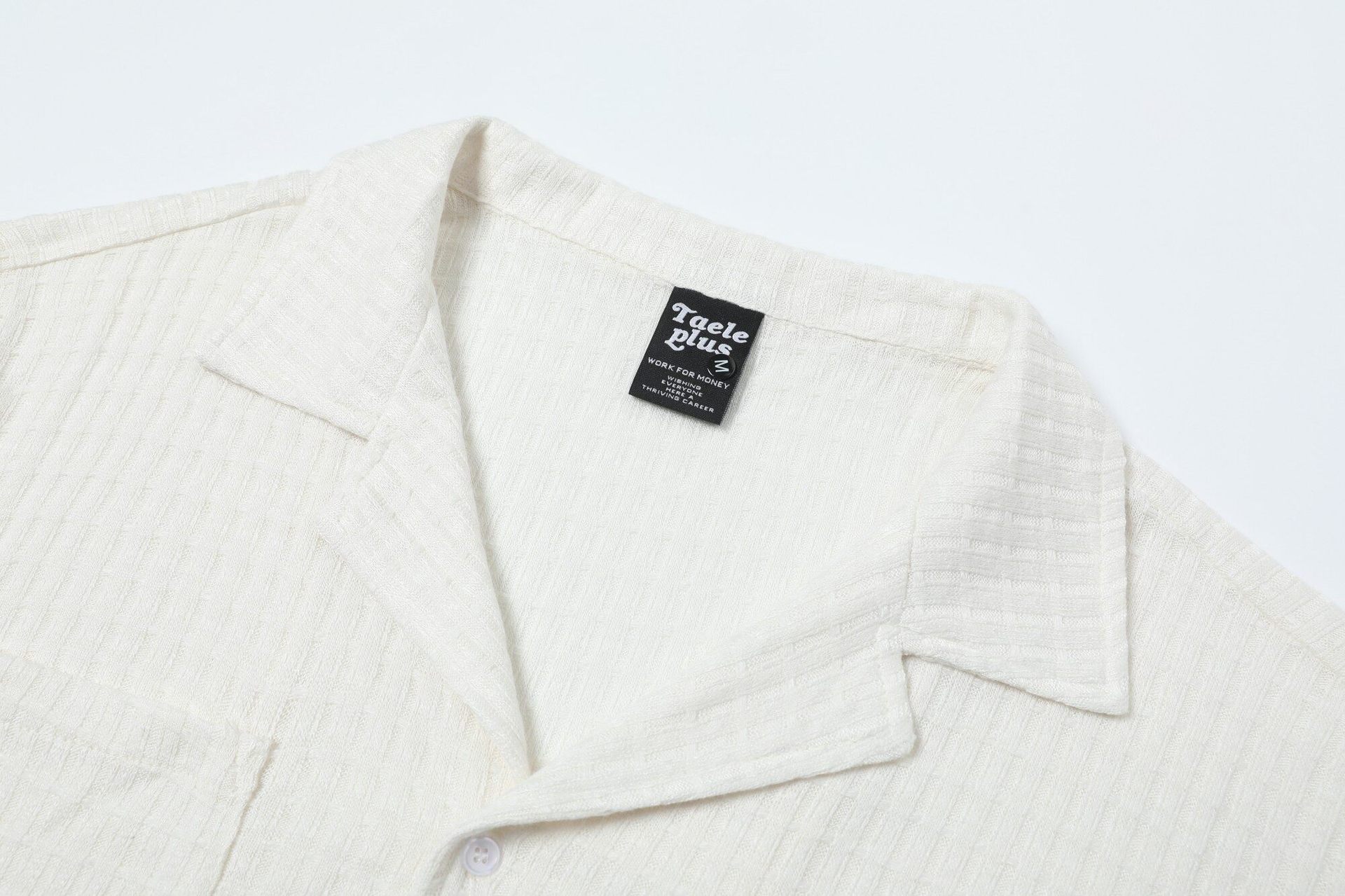 Texture sensation lapel short sleeved shirt for men simple solid color Cuban collar shirt
